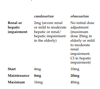- Patients started on candesartan 8mg or olmesartan 10mg