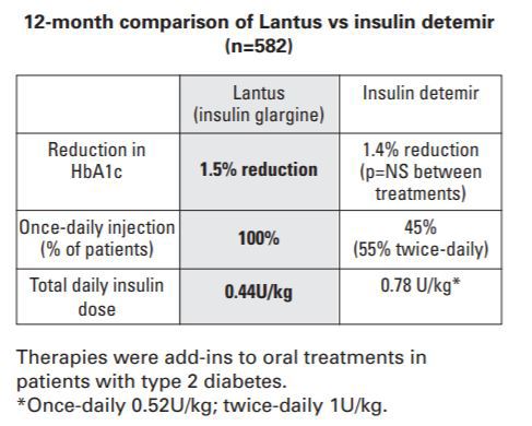 Furthermore Sanofi-Aventis highlighted itself that it compared weight results with once-daily Lantus and twice-daily Levemir. Although twice-daily use was permitted by the Levemir SPC, it was not the usual and recommended way in insulin initiation.
