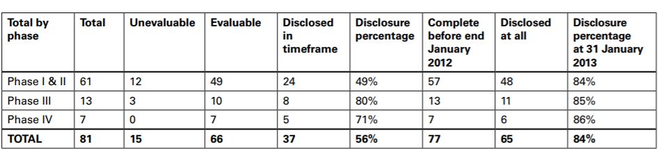The Panel noted that the study concluded that the results of over three quarters of all company sponsored clinical trials were disclosed within a year of completion or regulatory approval and almost 90% were disclosed by 31 January 2013 which suggested transparency was now better than had sometimes been reported previously.